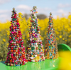 Bring a touch of nostalgic charm to your Christmas decor with these beaded festive trees. Crafted from a hollow cone and adorned with a delightful mix of vintage style chunky bright coloured beads or sequins. These trees sparkle beautifully in the sun. Choose from 12 inch sequin or 7 inch chunky beads to add a playful, handcrafted sparkle to your festive celebrations.